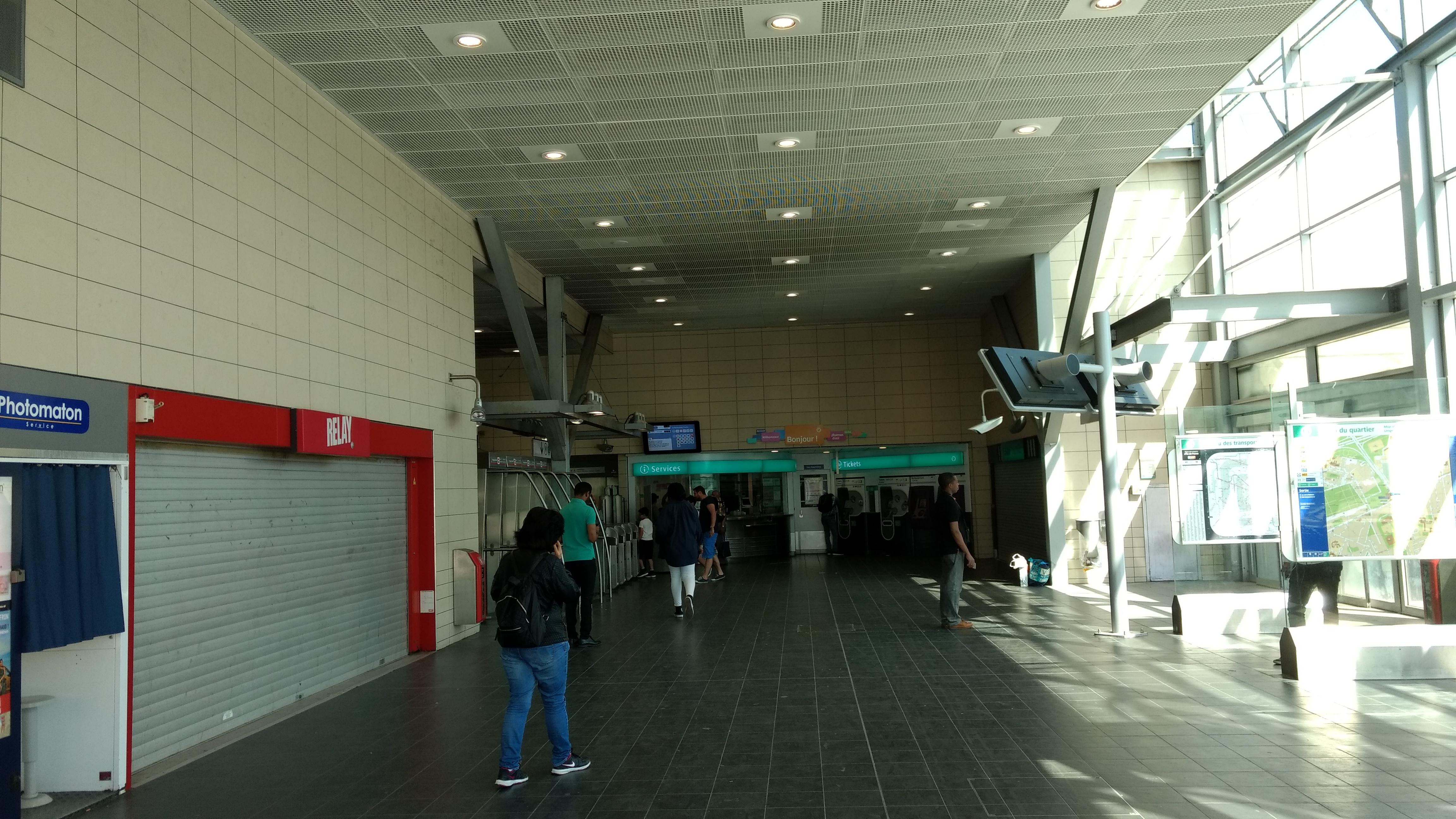Station avec un pole accueil/informations /ventes Une cafétéria, un photomaton et un vendeurs de magazines journaux Terminus de la Ligne 13 .accès .au Tramway et aux bus.