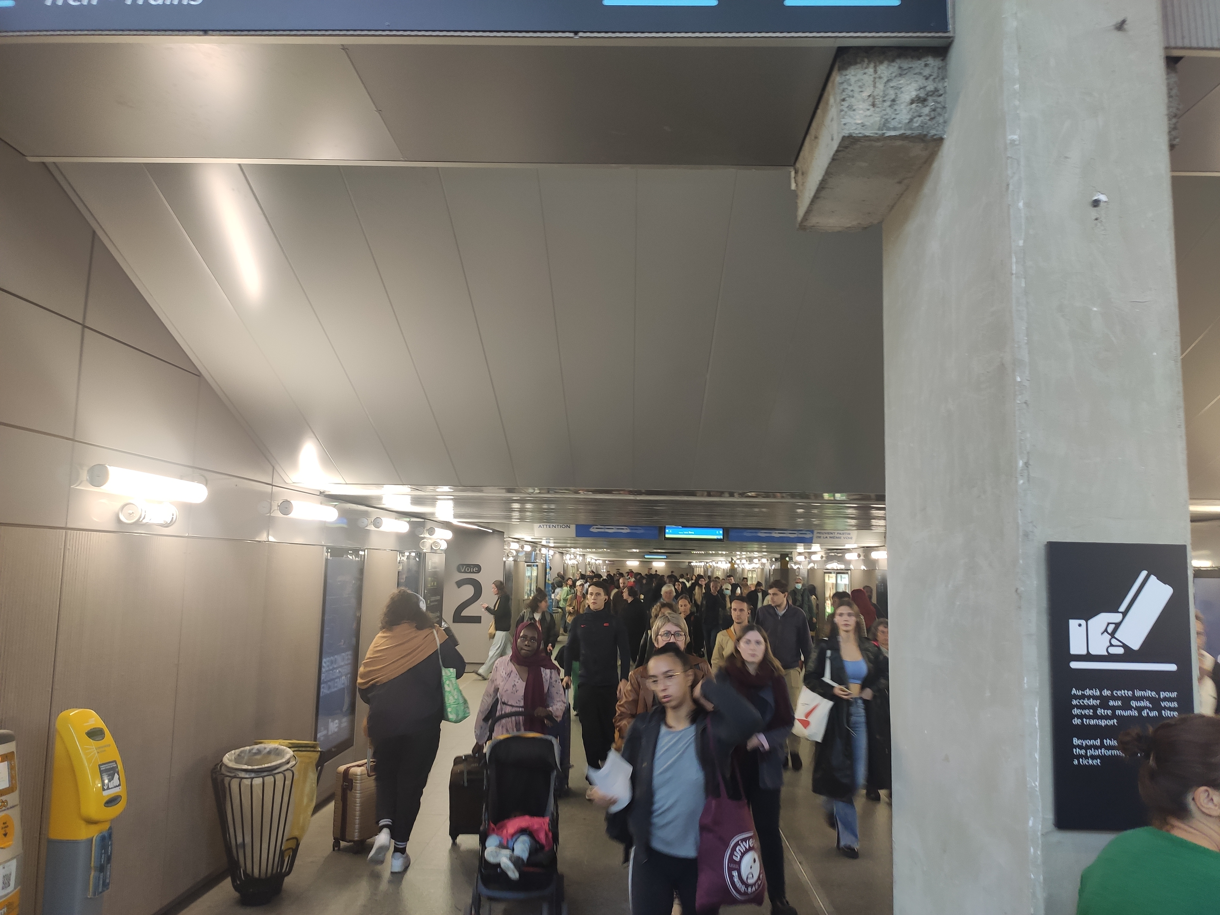 Arrêt de métro très pratique pour accéder a l'a gare ( vous atterrissez directement dedans ) mais toujours ces problèmes d'espace et de fréquentation