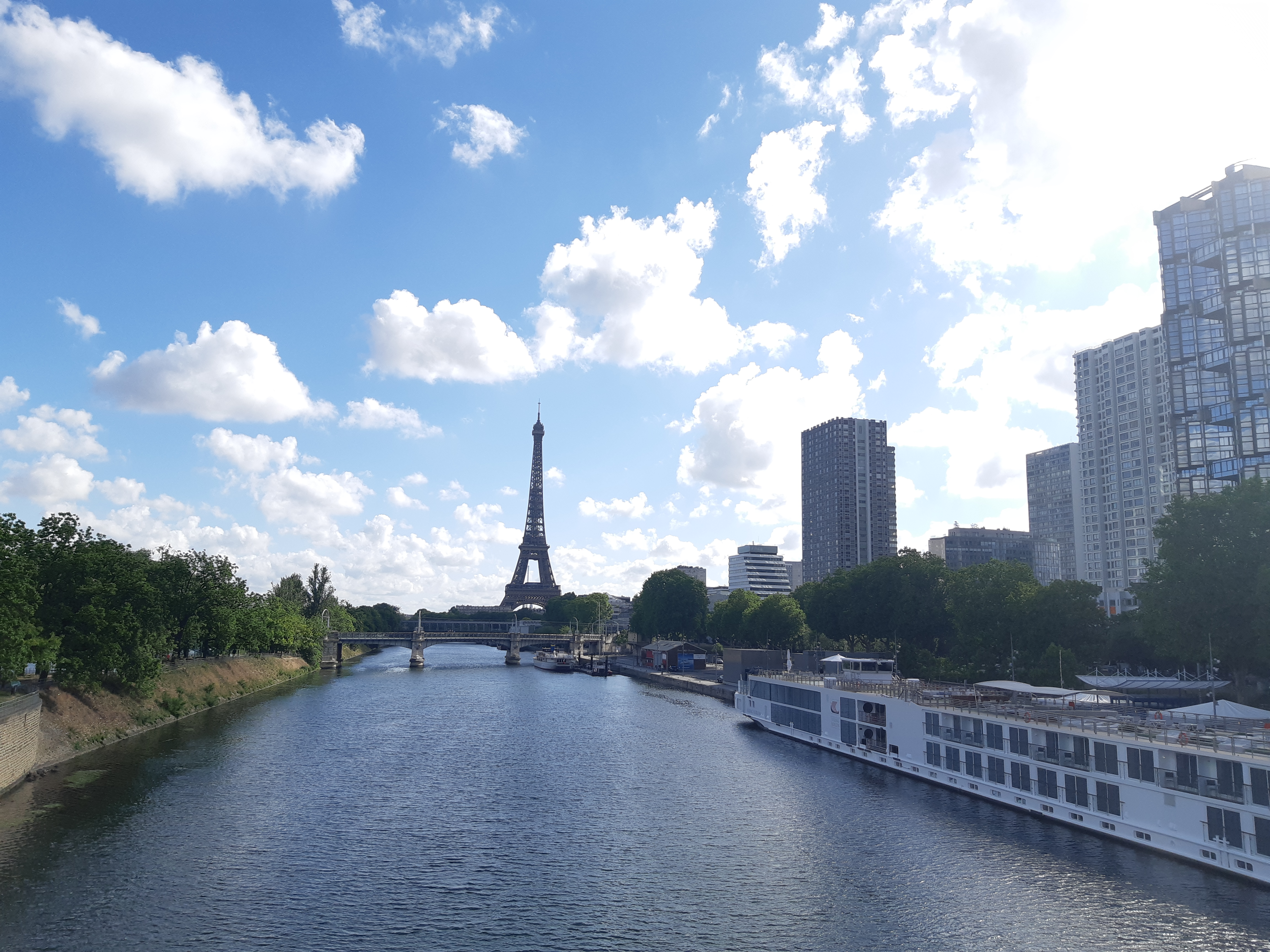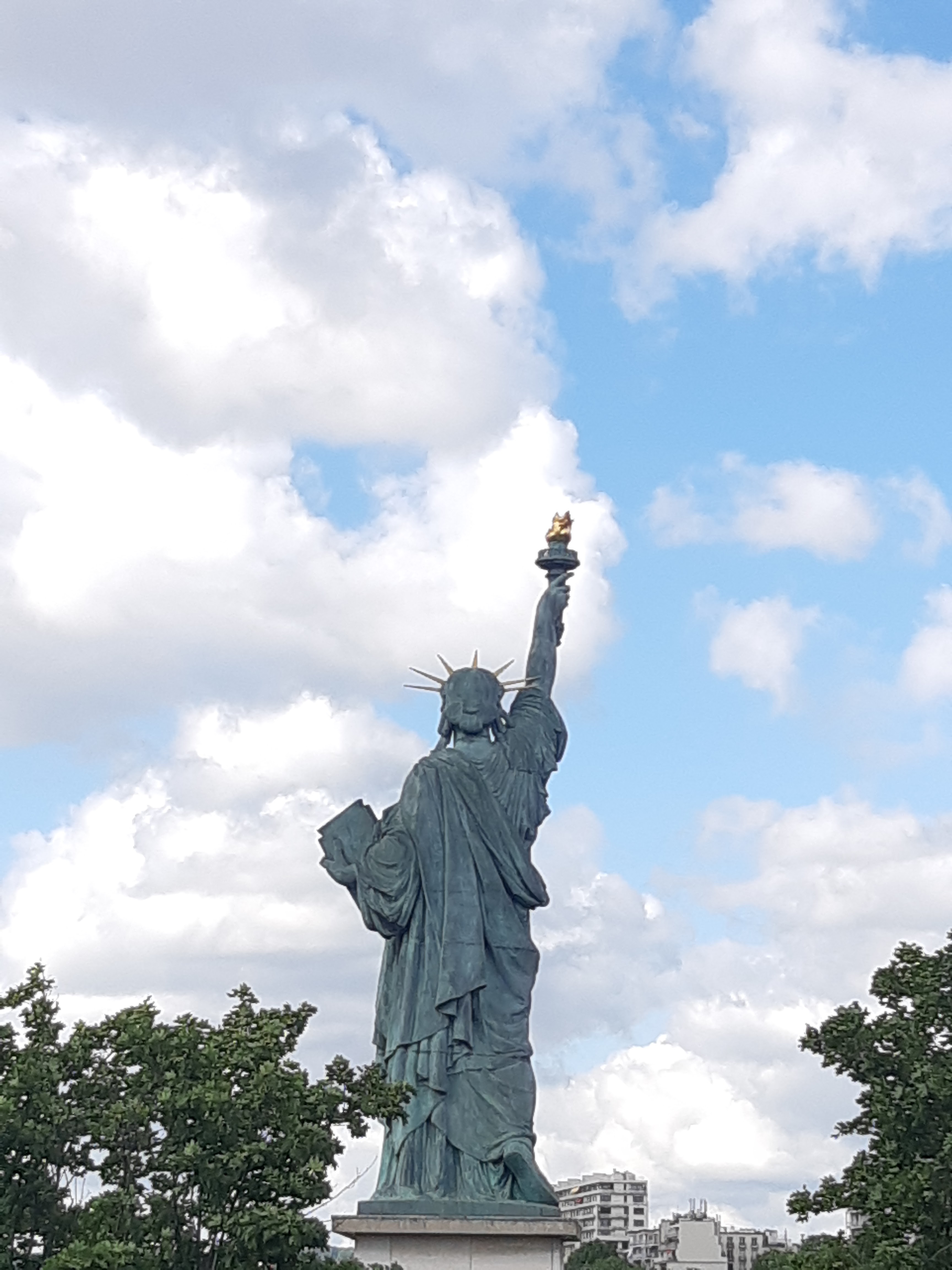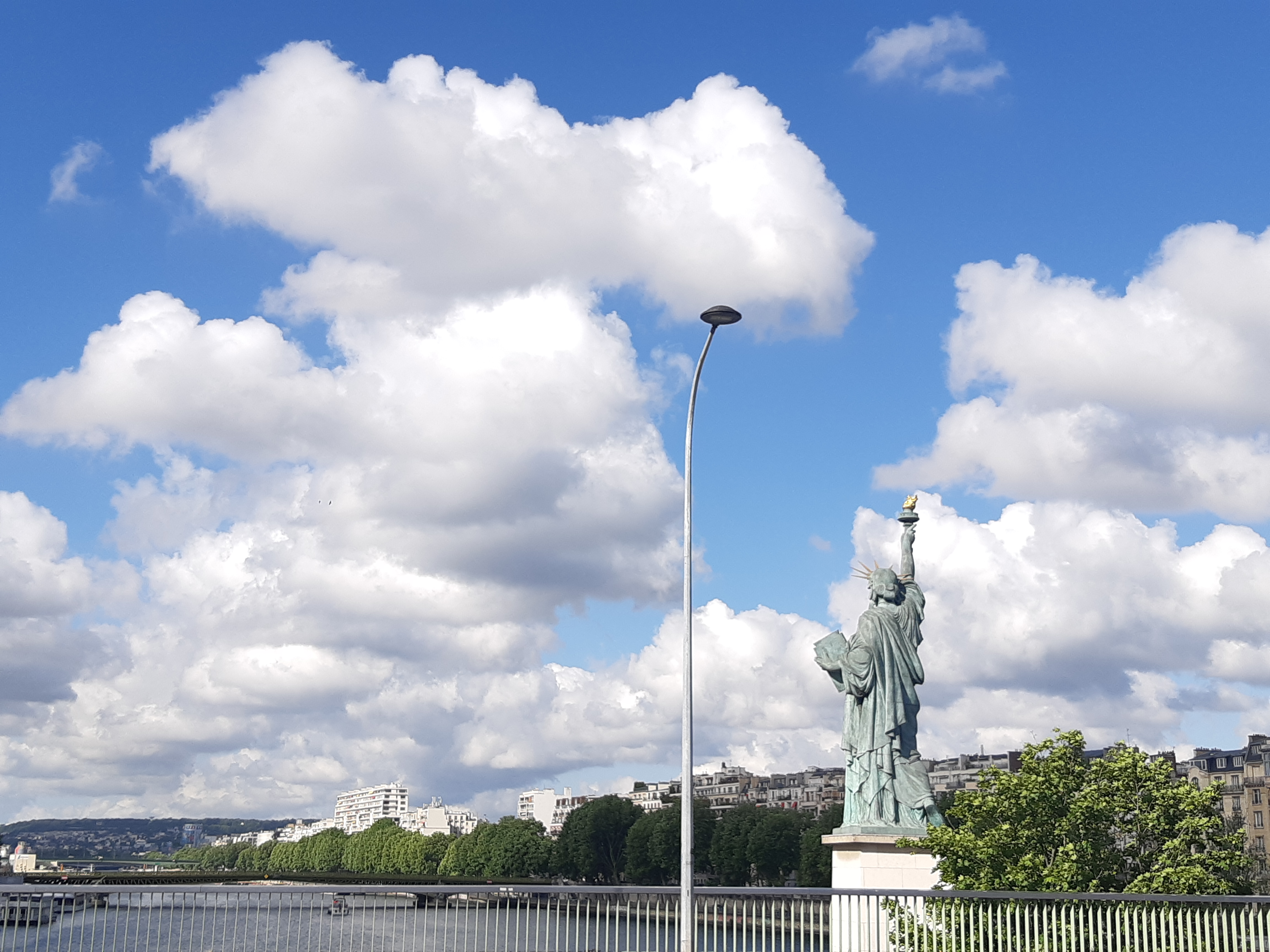 Bonne vue depuis ce pont entre la Tour Eiffel et la Statue de la Liberté, génial 👍👍👍