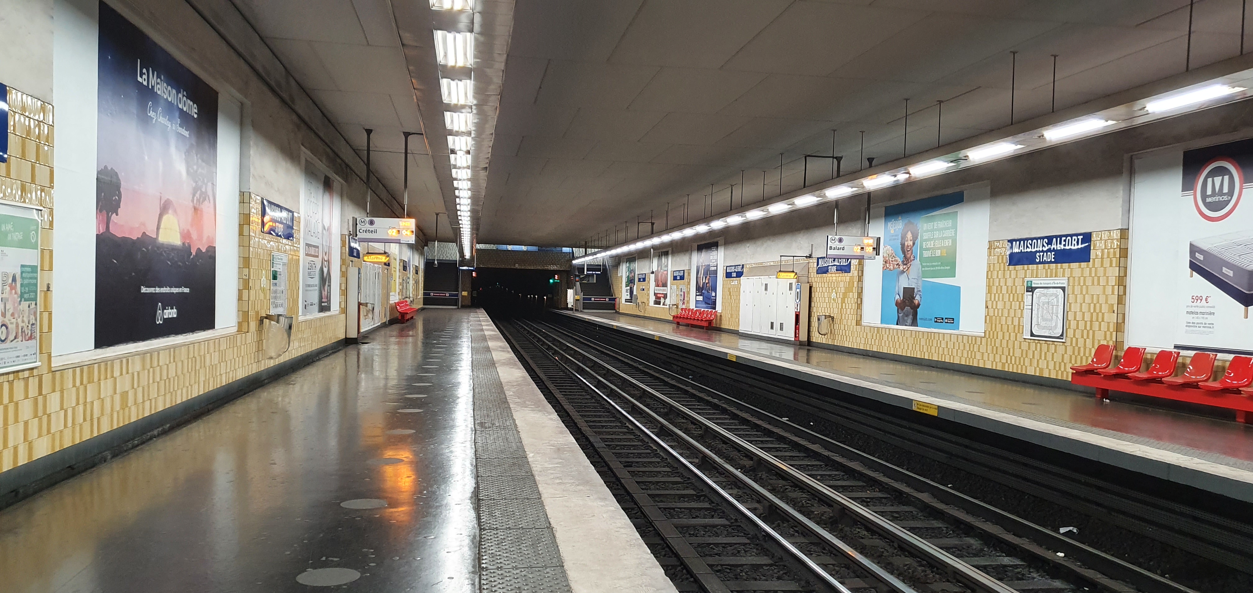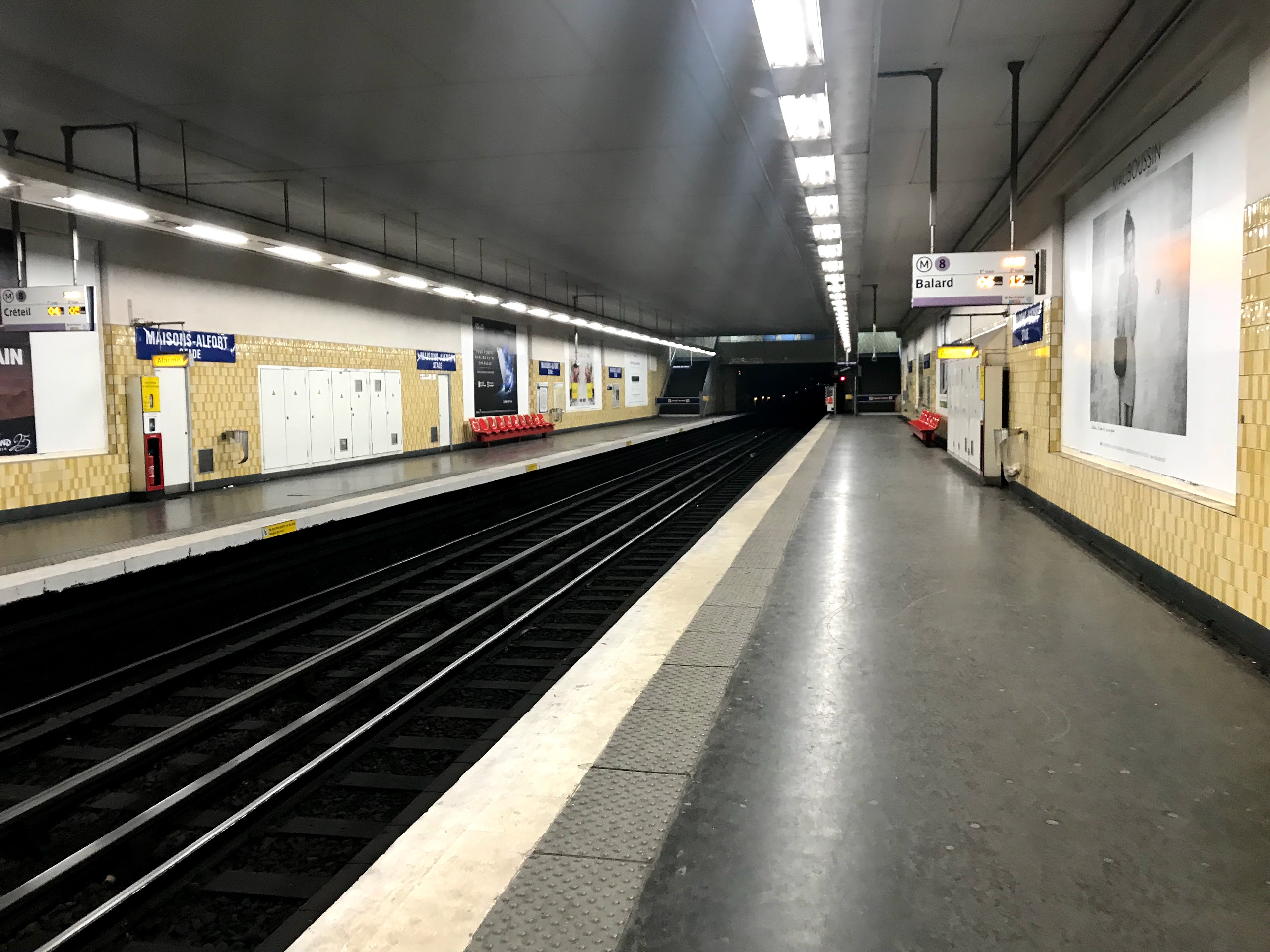 Une station du métro ligne 8, desservant la commune de Maisons-Alfort Comme beaucoup d'autres stations, l'accès aux quais et sorties se fait uniquement par les escaliers. Heureusement, la station est petite, donc pas de labyrinthes de couloirs à parcourir, mais pas franchement recommandé pour les personnes âgées, handicapées, ou voyageant avec poussettes et / ou valises lourdes et volumineuses 😉☹️